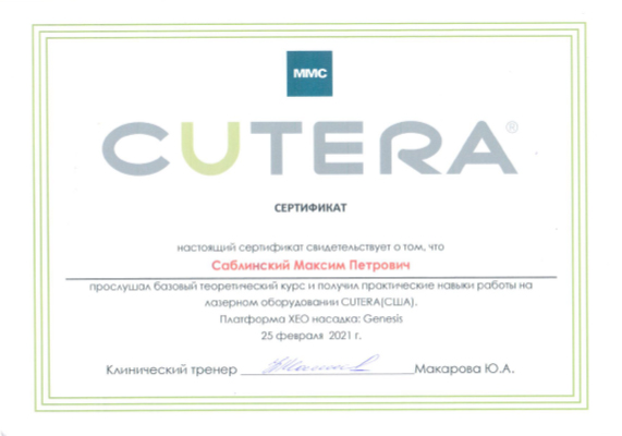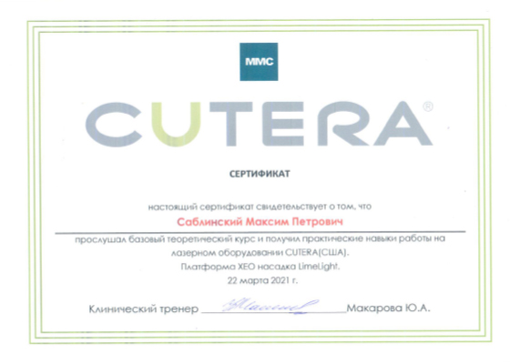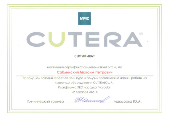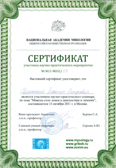 - Обучающий курс по программе «Основы дерматоскопии», Общество дерматоскопии, г. Москва, 2015 г.