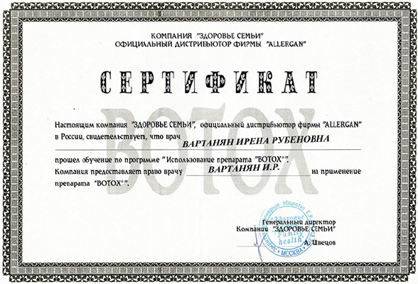 по специальности «Дерматовенерология», Российский университет дружбы народов, 1998 г.