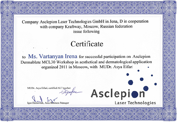 - Стажировка в Asclepion Laser Technologies, Германия
