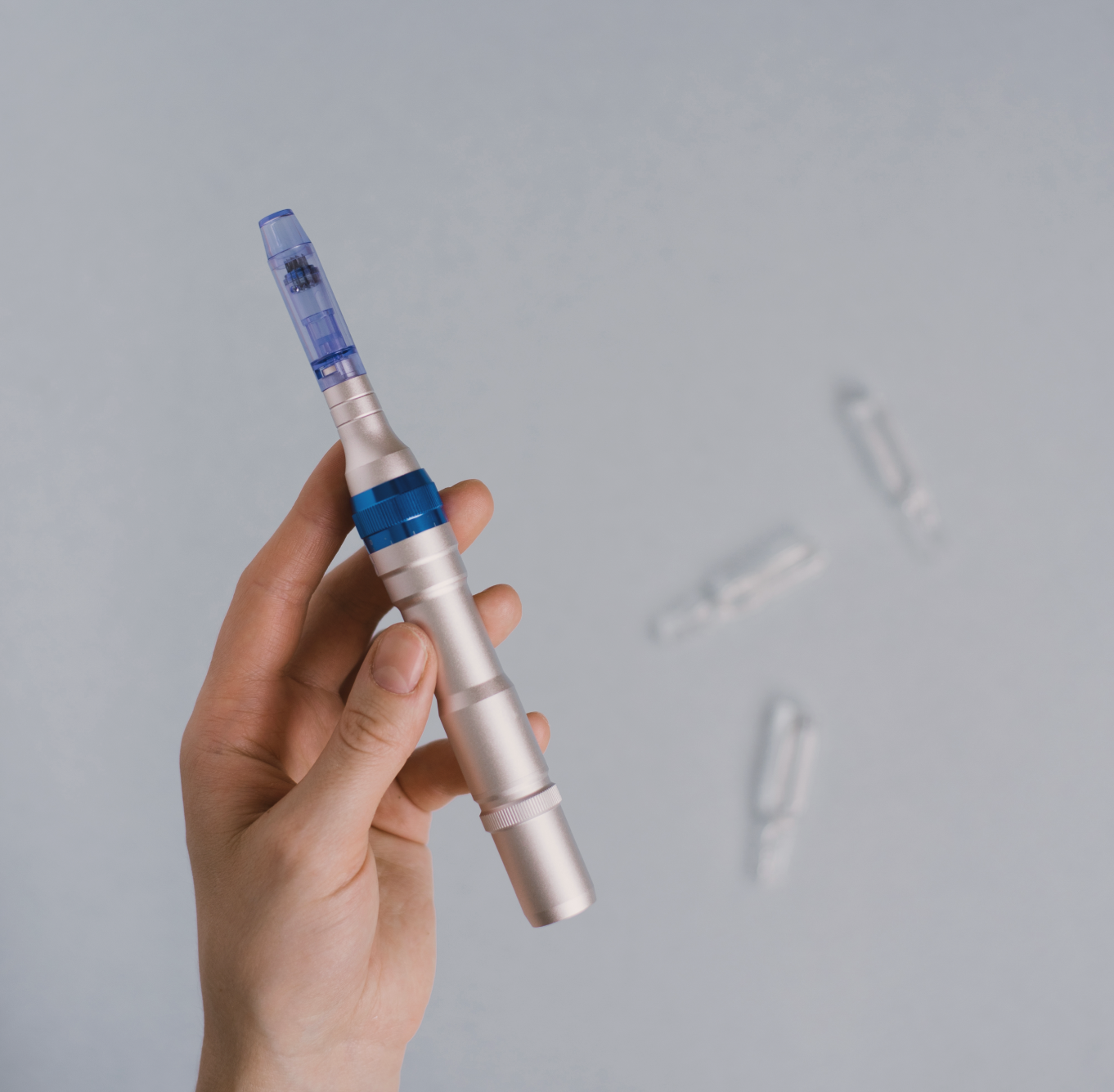 Дермапен – портативный аппарат, напоминающий ручку со сменными картриджами с тончайшими иглами.