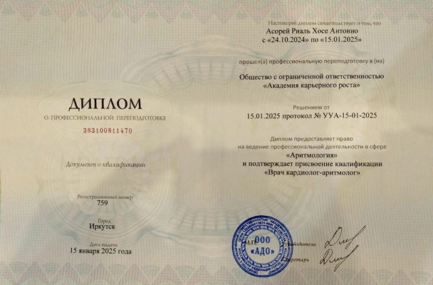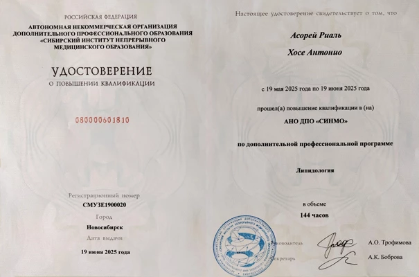 Институт физкультуры, заочное отделение, г. Понтеведра (Испания), 1987 г., кафедра фундаментальной биологии, биологический факультет, г. Сантьяго-де-Компостела (Испания), 1989 г., лечебный факультет, Российский государственный медицинский университет (РГМУ), г. Москва, 2010 г., дополнительное профессиональное образование по специальности «кардиология», Российский университет дружбы народов (РУДН), ГКБ № 64, г. Москва, 2017 г.