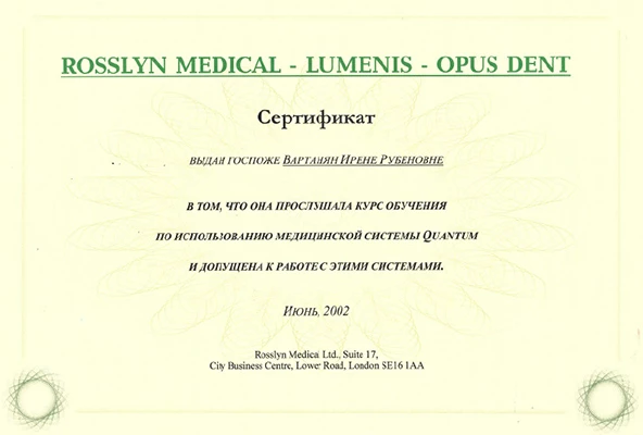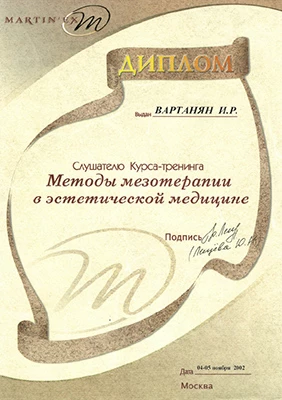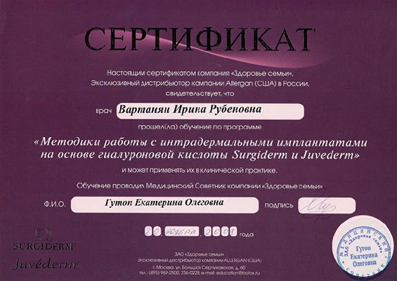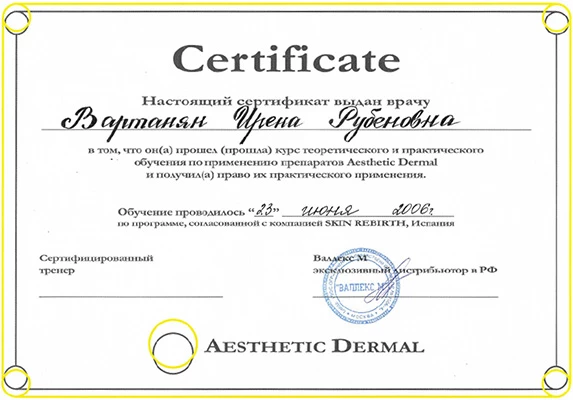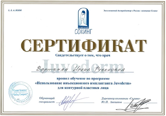 по специальности «Дерматовенерология», Российский университет дружбы народов, 1998 г.