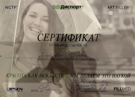 Владеет инъекционными методиками омоложения кожи: коррекция мимических морщин; мезотерапия (при лечении процессов старения кожи лица и тела); биоревитализация;